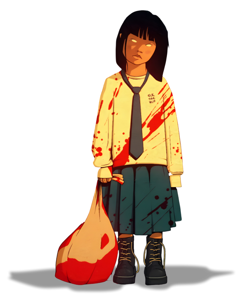 The heavy bag follows her everywhere—scraping floors, collecting whispers, and carrying what no one else dares to hold.